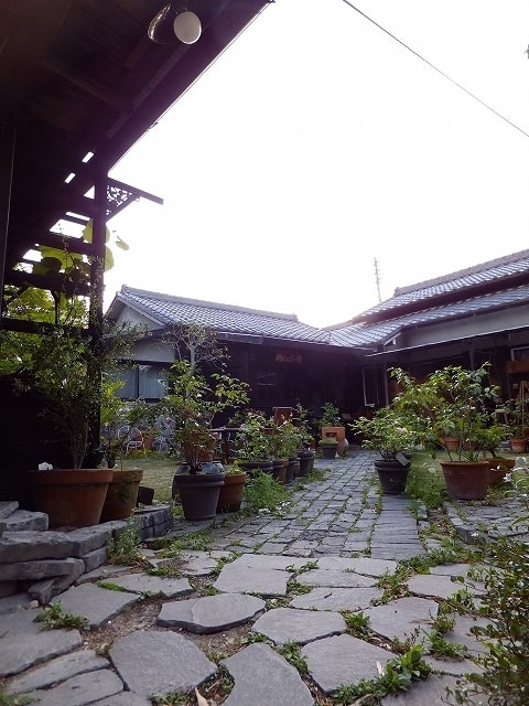 市民会館前の信号から、市民会館に向かって上がり、市民会館ロータリー手前で、左に道なりにさらに上り、左右の未舗装の駐車場の終わるあたりに車を止めて、左手に学童保育所がある路地を左へ降りると、「椿館」と書かれた看板が見えます。