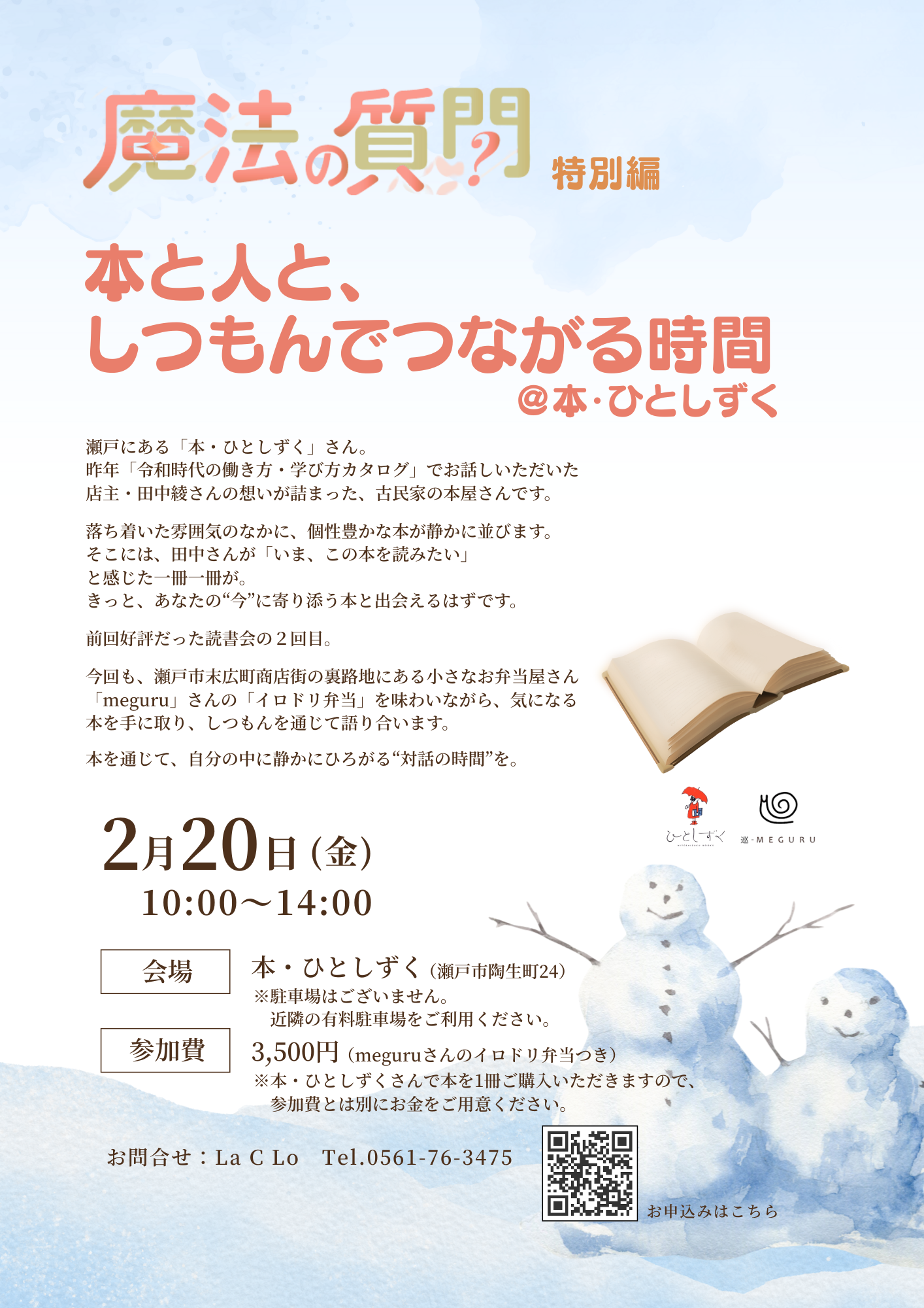 「本と人と、しつもんでつながる時間」@本・ひとしずく