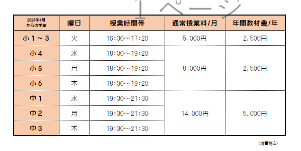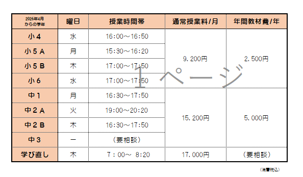 ※授業回数が増減する場合は、この金額をベースにお月謝を決定いたします。